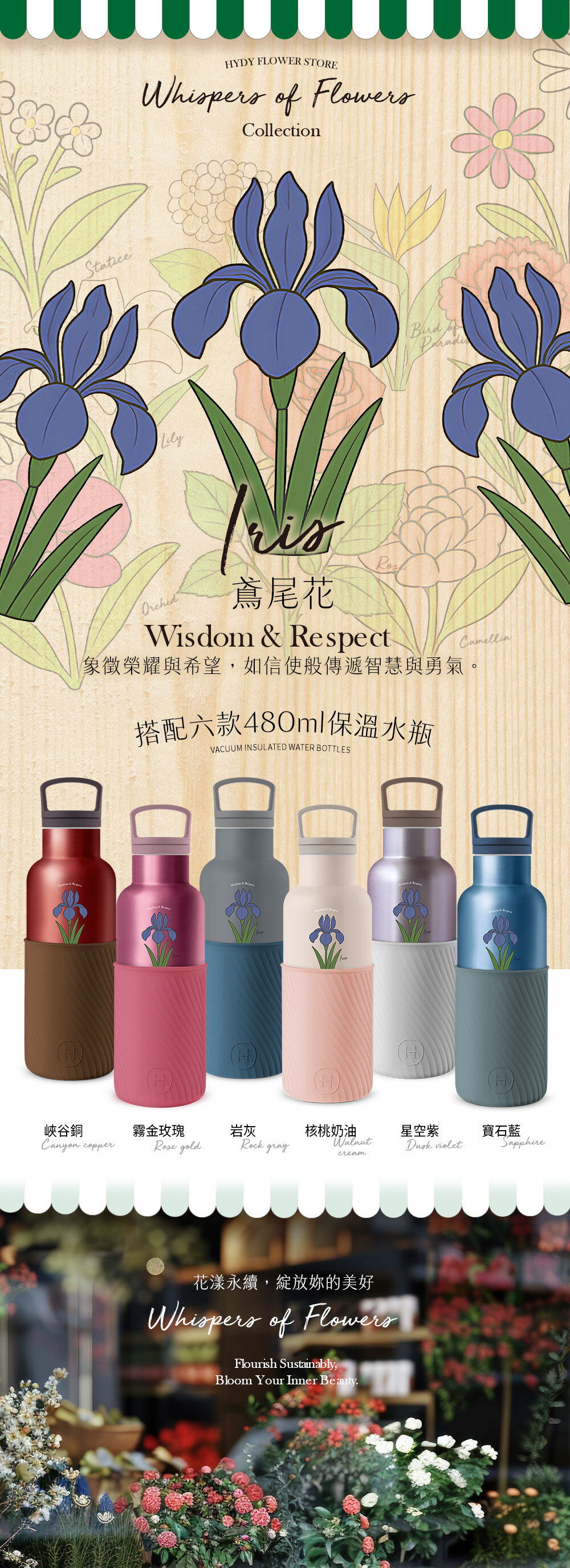 【花語呢喃】480ml 保溫瓶|鳶尾花