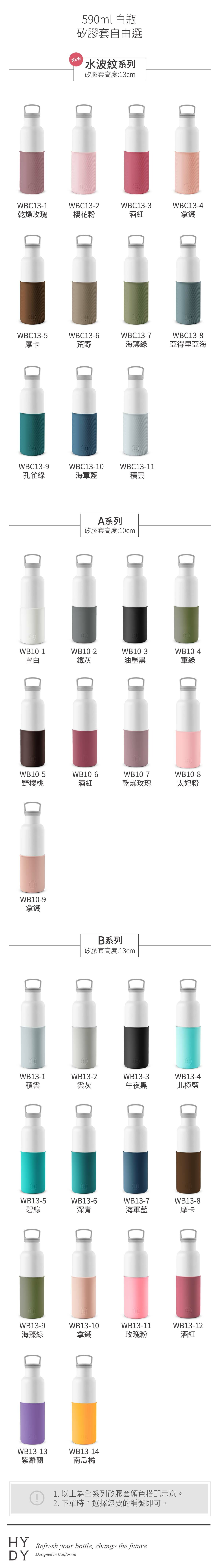 【 590ml專用矽膠套】水瓶本身已經有一個矽膠套囉~可以選擇別的顏色做替換。請於結帳頁面備註加購的顏色款式,如無備註將隨機出貨!